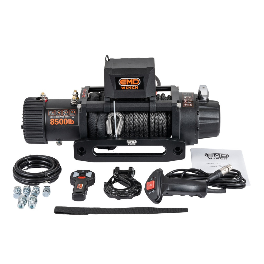 Troliu electric auto EMD Winch 8500lbs (3856kg), 12V, cablu sintetic, 24m, raport 150:1
